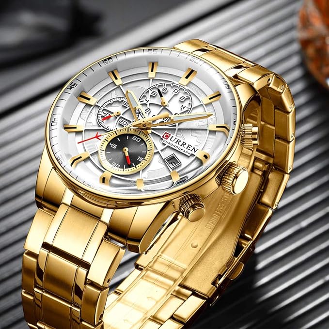 ساعة Benyar 5133 كوارتز بحزام فولاذي كرونوغراف وتاريخ رجال الأعمال